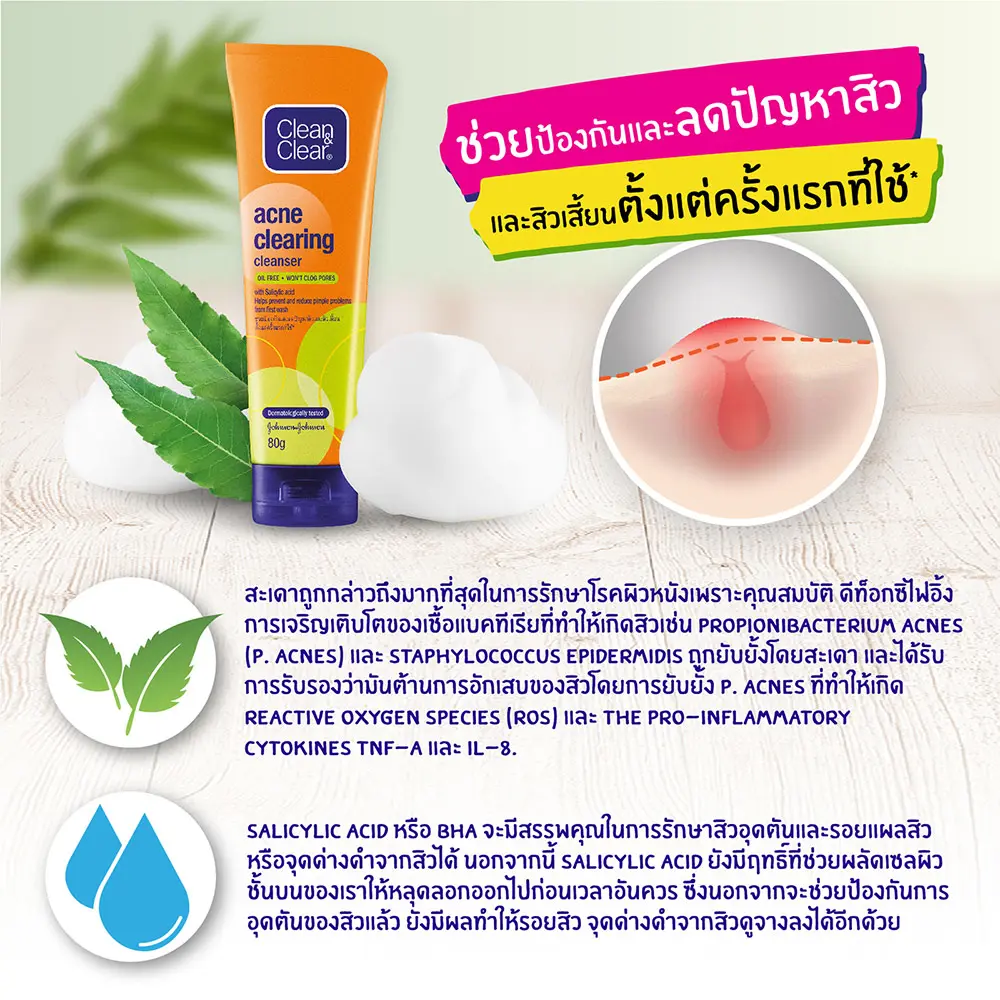 คลีนแอนด์เคลียร์ แอคเน่ เคลียริ่ง คลีนเซอร์ ลดปัญหาสิวและสิวเสี้ยนตั้งแต่ครั้งแรกที่ใช้*